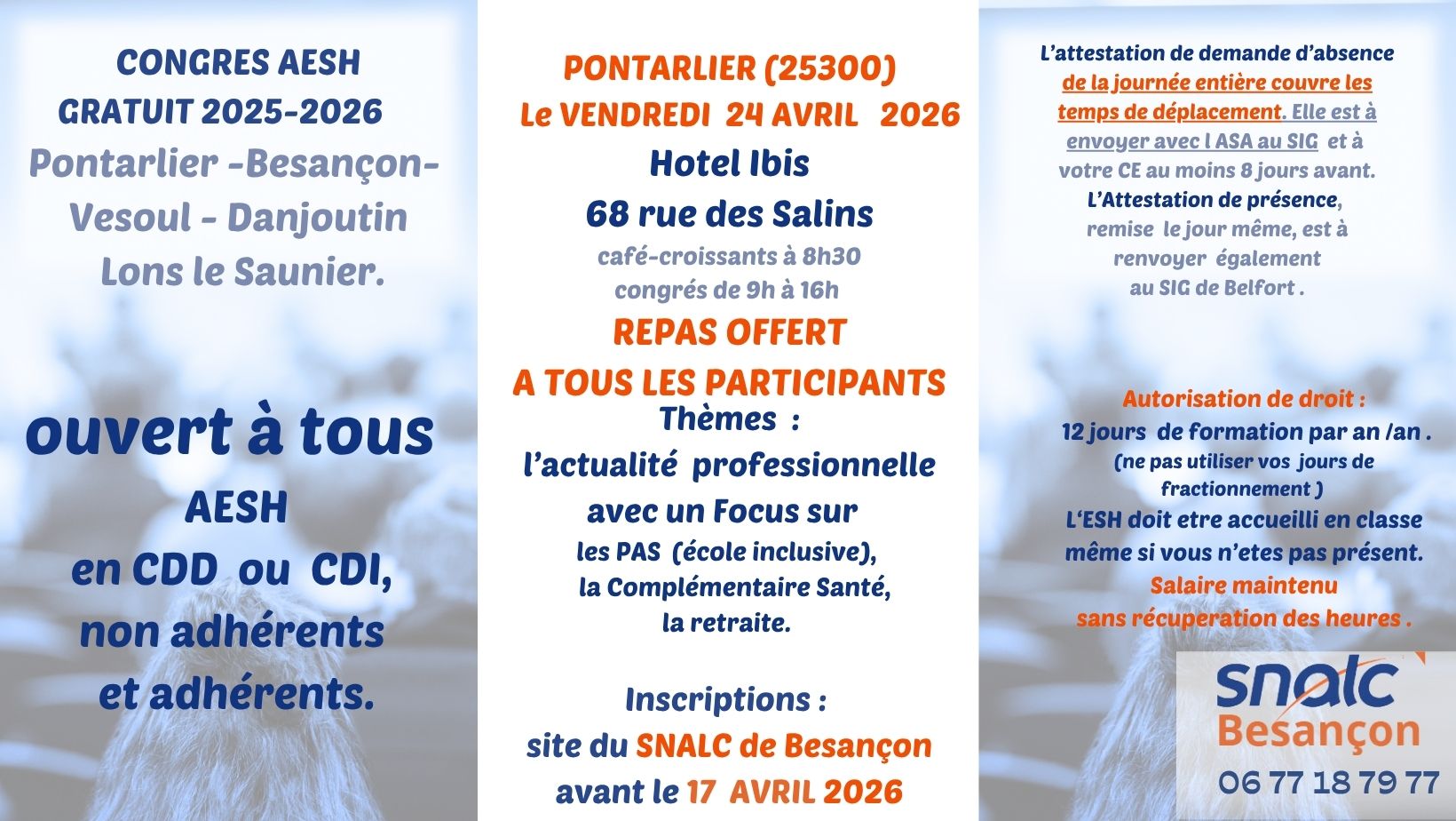 le SNALC Besançon organise l’un de ses congrès à destination des AESH.